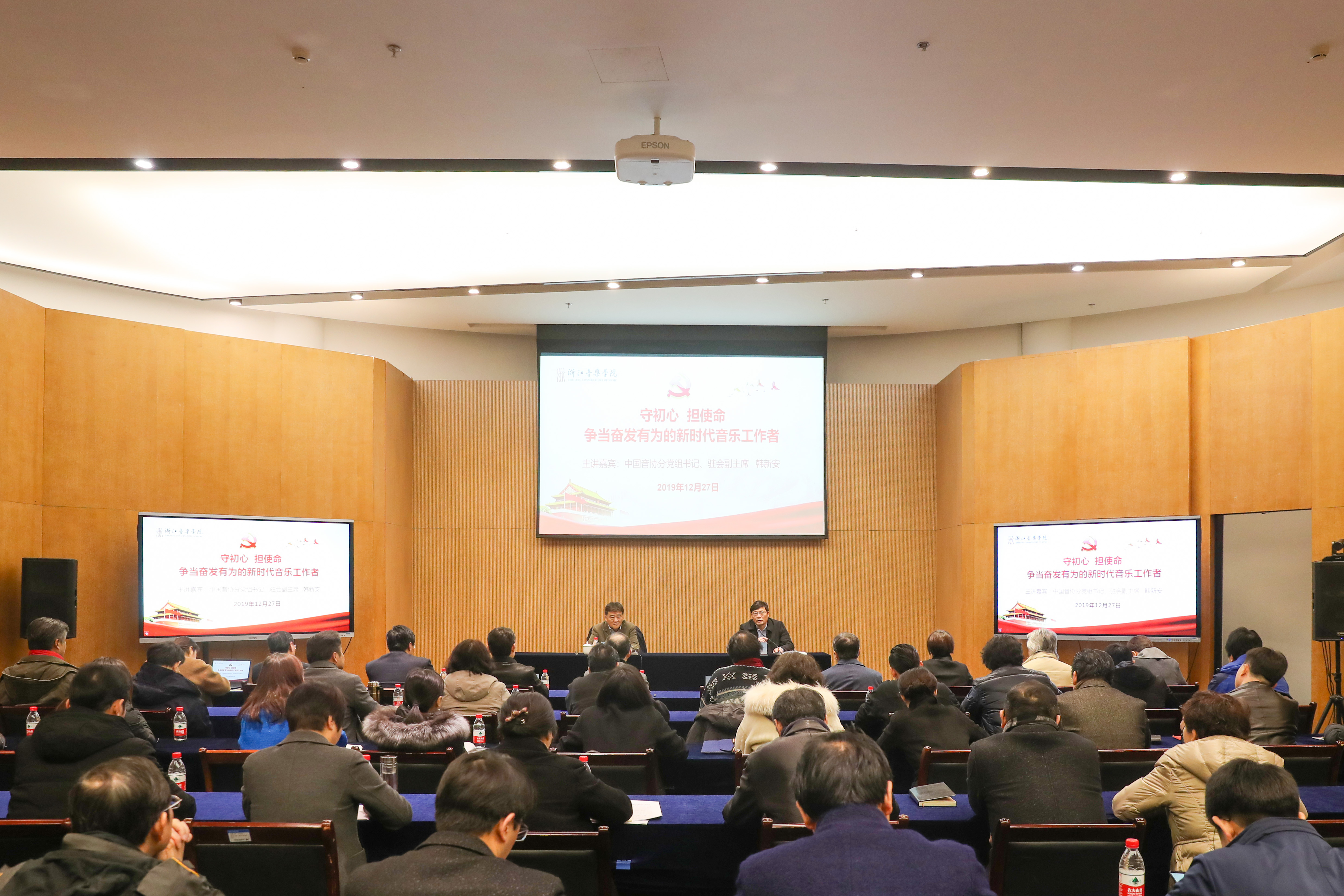 12月27日下午,学院在行政楼103会议室召开党委理论学习中心组(扩大)专题学习会,特邀中国音乐家协会分党组书记、驻会副主席韩新安作了题为“守初心、担使命,争做奋发有为的新时代音乐工作者”专题学习辅导报告。学习会由学院党委书记胡建新主持。