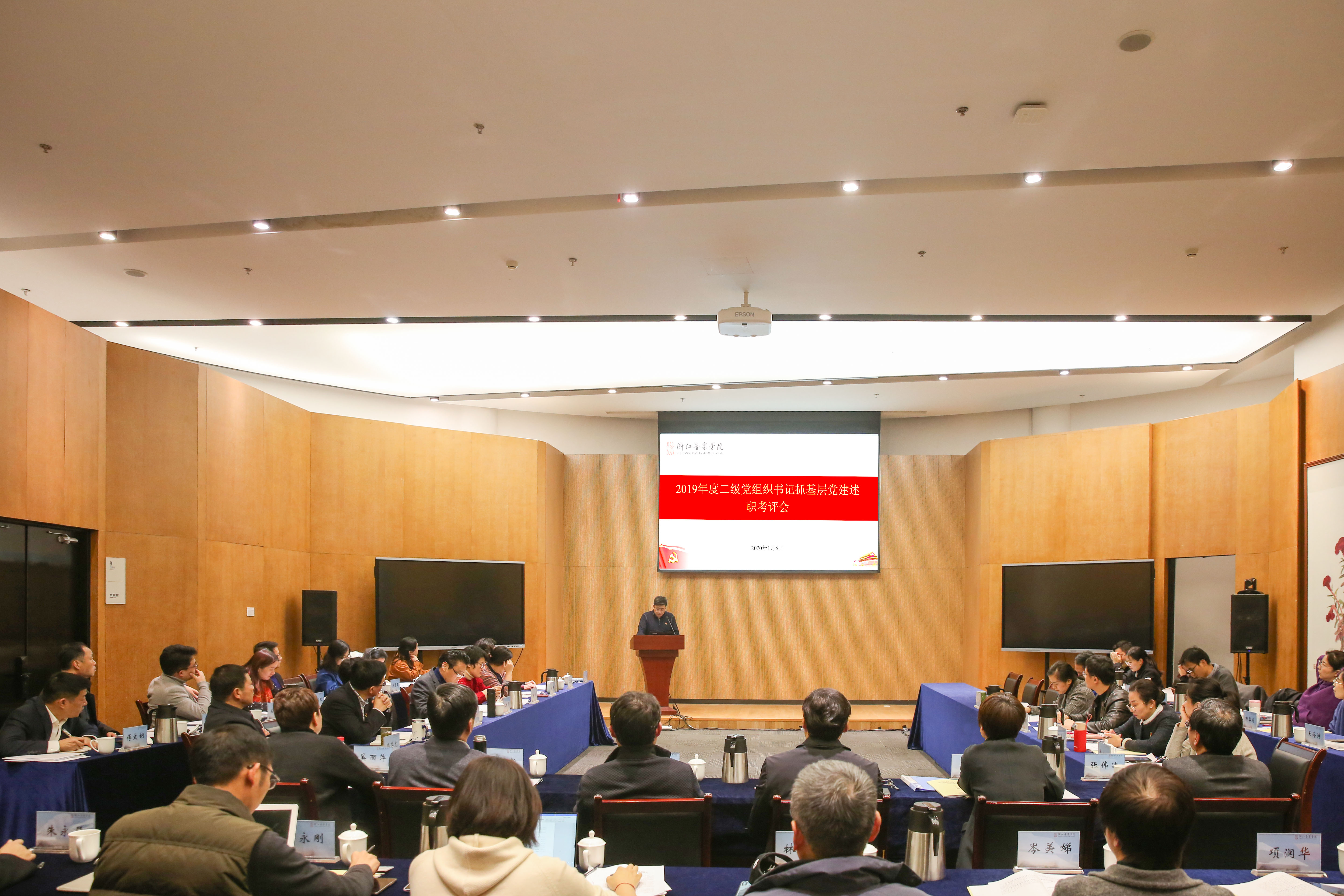 1月6日下午,学院召开二级党组织书记抓基层党建述职考评会。学院领导胡建新、张建国、贾秀英、方培新、张伟波,党委班子成员,各二级党组织书记、副书记、组织员,全体基层党支部书记,机关党群部门负责人共60余人参加。会议由学院党委书记胡建新主持。