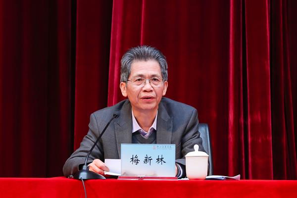 针对巩固扩大主题教育成果,梅新林强调,一要坚持不懈抓学习,始终用习近平新时代中国特色社会主义思想武装头脑。充分发挥“三个地”的宝贵政治资源优势,把学深悟透新思想融入日常、抓在经常,引导广大党员干部进一步增强“四个意识”、坚定“四个自信”、做到“两个维护”。二要坚持不懈抓党建,切实把加强党对高校的全面领导和改进党的建设落到实处。要认真贯彻落实党的教育方针,把牢正确办学方向,围绕立德树人根本任务,加强党建和思想政治工作,实施“整校建强”铸魂行动,打造“清廉教育”、建设“清廉学校”,推动全面从严治党落实落地。三要坚持不懈抓整改,努力在推动高校治理体系和治理能力现代化中厚植优势。以自我革命的精神深入推进问题整改,紧盯9项专项整治认真开展“回头看”,健全完善学校治理体系现代化制度机制,加快制度化、规范化建设,形成科学高效的运行机制和工作机制。四要坚持不懈抓发展,真正在深化内涵发展中推动高教强省战略。自觉把工作放在“六个浙江”“四个强省”和“两个高水平”建设中来谋划,紧扣“‘八八战略’再深化、改革开放再出发”来部署,不断推动学校各项事业实现新突破、再上新台阶,为浙江奋力推进“两个高水平”建设作出更大的贡献!