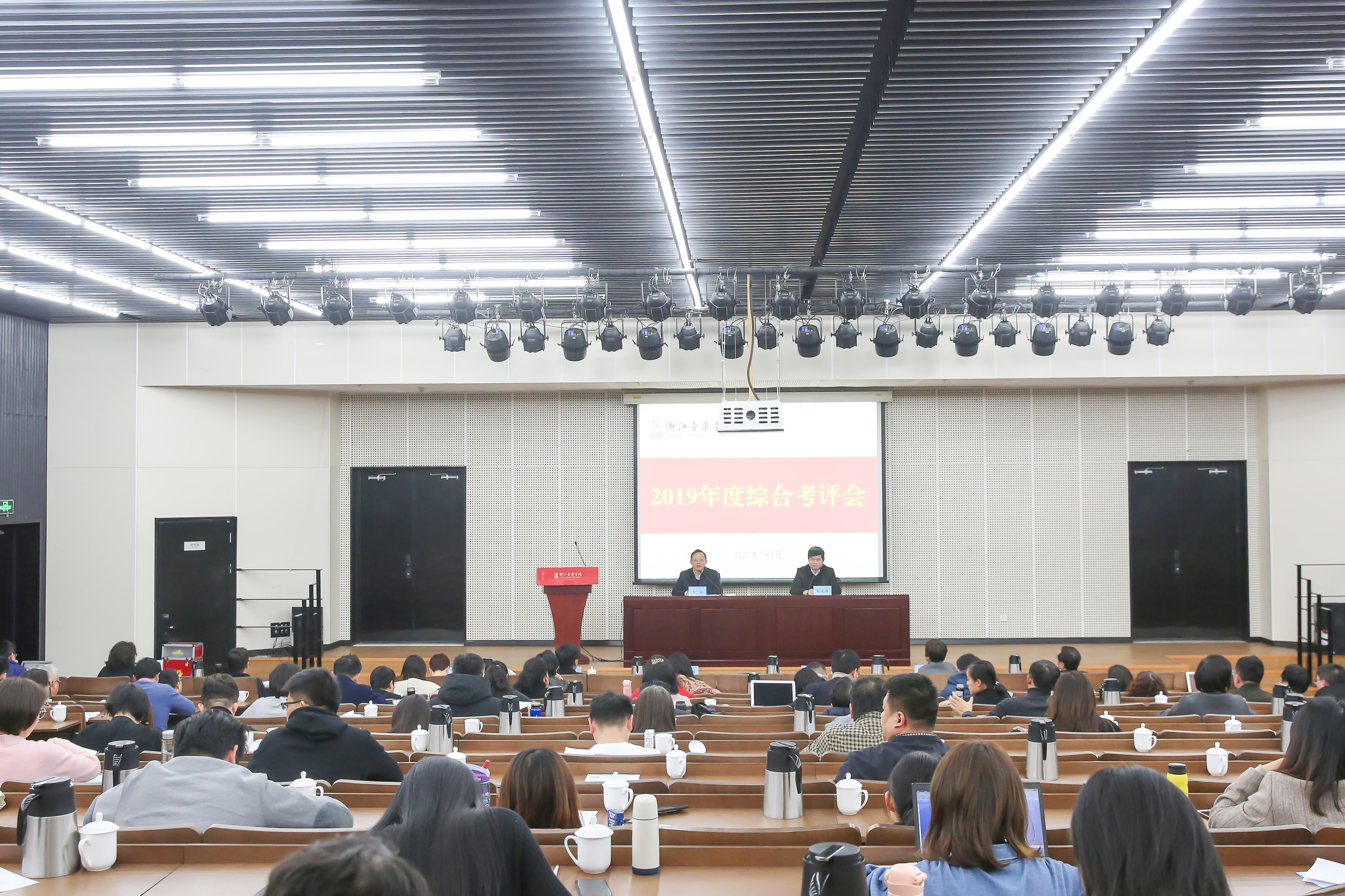 学院院长、党委副书记王瑞在总结讲话中充分肯定了大家一年来为学院发展所付出的辛勤劳动,并对各系(部)、单位、部门负责人的年度述职进行了点评。他指出,2019年在各系(部)、单位、部门的共同努力下,学院各个方面都取得了很好的成绩,代表核心竞争力的关键指标有所提高,代表浙音实力的标志性成果也逐渐凸显,各项事业呈现出快速向上向好的发展态势。结合学院发展实际及面临的新形势、新挑战,他强调,2020年是学校“十三五”规划的收官之年,也是第五轮学科评估的启动之年、“十四五”规划谋篇的布局之年,学院要重点围绕加大人才培养力度、提高学科专业建设水平、加强师资队伍建设、提升科学研究与创作水平、加大国际合作力度,提升社会服务转化水平、建立高效集约化的现代大学管理运行机制、加强大学文化建设等8个方面内容,提前谋划、狠抓落实,凝聚共识,同向同行。全院干部要通过不断提升学习能力、规划能力、执行能力、协作能力和创新能力等5大方面能力,进一步推动学各项事业上台阶、上水平,为早日成为国际一流的高水平音乐学院做出更多更大的贡献。