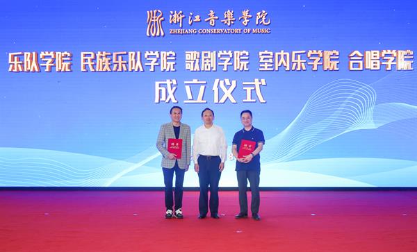 仪式上,省文化和旅游厅党组书记、厅长褚子育,省音乐家协会主席翁持更,浙江交响乐团团长郭义江,学院党委书记胡建新、院长王瑞,以及“五大学院”艺术总监和有关负责人共同为“五大学院”揭牌。