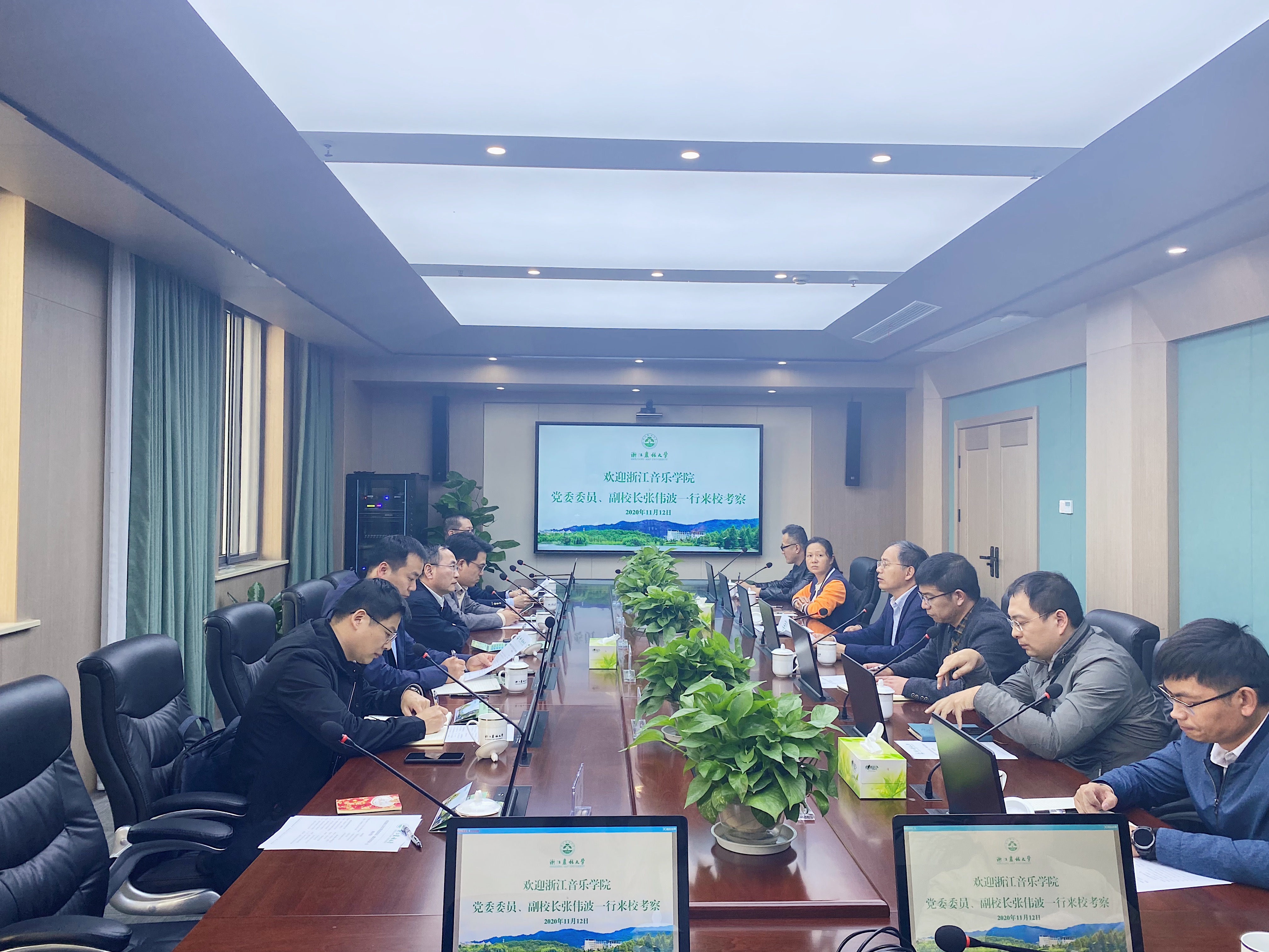 11月12日下午,学校党委委员、副校长张伟波带领后勤与校园安全处、网络安全与信息化建设办公室、资产经营公司等部门负责人赴浙江农林大学进行考察调研。