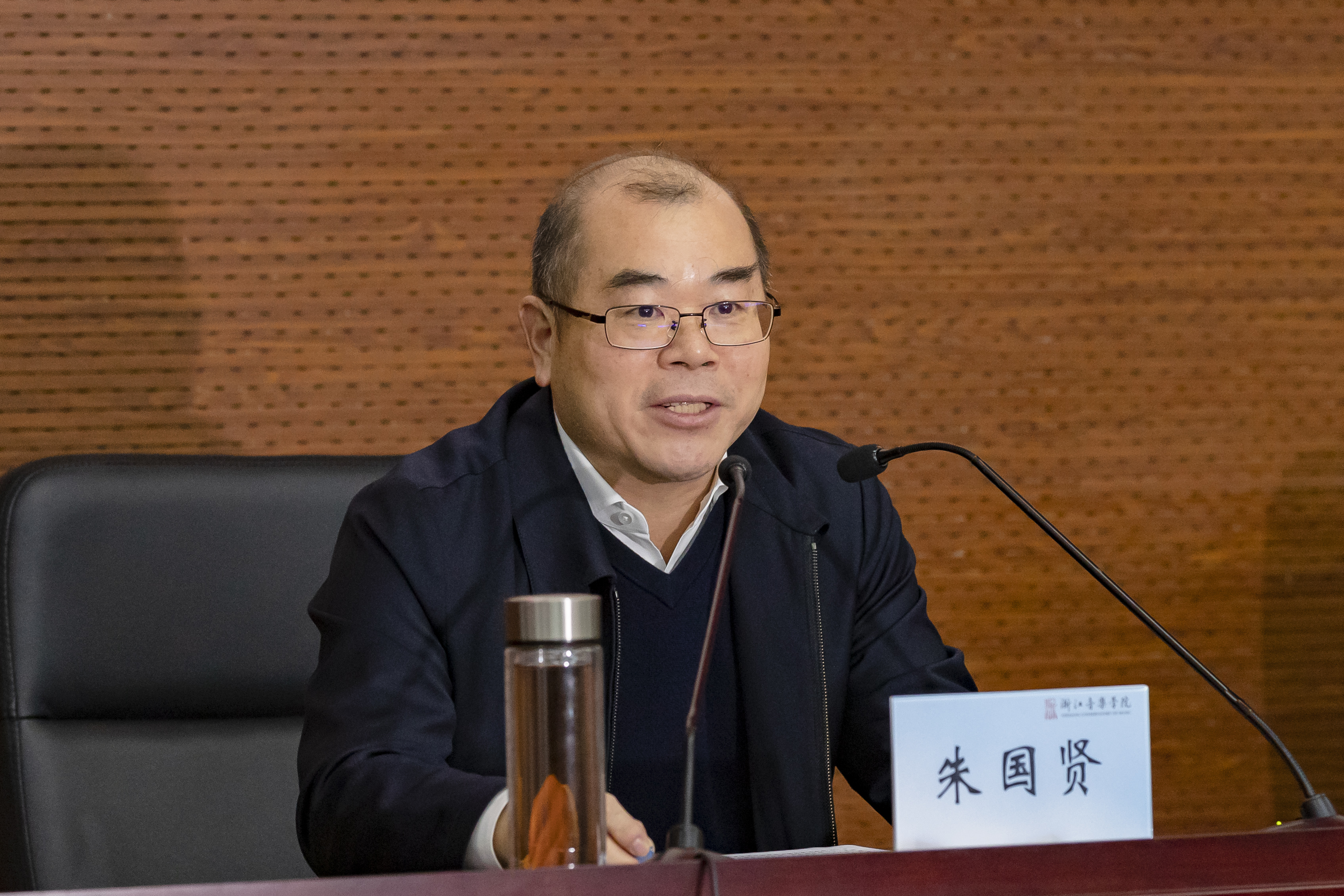 朱国贤强调,党的十九届五中全会明确提出到2035年建成文化强国,省委十四届八次全会把文化建设现代化先行作为争创社会主义现代化先行省的“十个先行”之一。作为我省重点打造的艺术类高等院校,浙音要全面把握全会锚定的思想高地、文明高地、文化事业和文化产业高地的深刻内涵,立足浙江文化发展,积极响应省委铸魂工程、溯源工程、走心工程等行动,努力推出一批反映新时代新气象新浙江的精品力作。希望每个浙音人能自觉地融入到文化浙江建设中,努力成为打造新时代文化高地的“顶梁柱”、唱响我省文艺繁荣兴盛的“高音部”。浙音要成为“重要窗口”的金名片,浙音师生要成为文化高地建设的生力军,浙音作品要成为展示浙江形象的新标识。