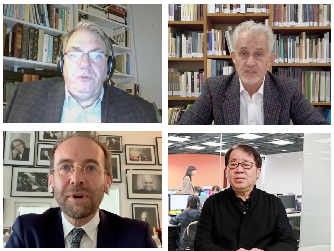 受疫情影响未能到达现场的巴黎索邦大学吉勒·德莫奈教授、纽约大学理查德·马洛尼教授、巴黎爱乐音乐厅埃马纽埃尔·翁德雷博士、中国台湾表演艺术中心朱宗庆教授4位专家,向高研院的成立表示祝贺。