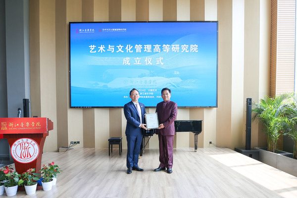 刁玉泉和胡建新共同为“艺术与文化管理高等研究院”揭牌。
