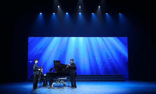 获奖作品展演在打击乐《本真奋进》气势雄浑的节奏声中拉开帷幕,乐手们通过多变的节奏和精妙的配合抓住了观众的心。随后,陈姚遥同学的舞蹈表演《金鱼》,用飘逸唯美的肢体语言展现了自然之美;丁航、王宇萌、肖钦文、邓子璐等同学带来的器乐表演技艺精湛,展现了其较好的专业水平;合唱表演《初心与恒心》由8首经典颂歌串烧而成,唱出了人民对党的无限崇敬之情,以及浙音学子坚定信念跟党走的决心。通过评奖和展演,“事必尽善”的校训精神被每位浙音师生所铭记,鞭策着大家砥砺奋进、刻苦练习、勇敢追梦。