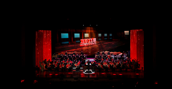 纱幕之下,立意凝重的《甲午祭》缓缓奏响,通过回溯无法忘却的历史之痛,为本场音乐会拉开了帷幕。随后,由王甫建词曲的《太阳升起的地方》将观众的思绪带回百年前的小小红船上。太阳露出了曙光,红船从这里启航,一曲《曙光·启航》开启了新的征程;《岁月如歌》将5首耳熟能详的红色历史歌曲联奏,带领现场观众追寻革命先辈的红色足迹,进行一次历史的回望;由毛泽东诗词题材创作的民乐作品《沁园春·长沙》则让人仿佛置身于生机勃勃的橘子洲头,重温中国共产党带领下走过的光辉历程。除了上半场脍炙人口的红色经典,还有下半场彰显时代精神的当代佳作。《党的光辉照我心》中稚嫩的童声为党再唱山歌,民族管弦乐《大地深情》将祖国的浩瀚江河、辽阔大地深情演绎;二胡与乐队《蔚蓝》展望构建共产党百年征程的宏伟蓝图,新疆艺术剧院民族乐团合奏的《我们新疆好地方》将本场音乐会推向高潮,最后,音乐会在钢琴、乐队与合唱的《新纪元》中圆满落幕。