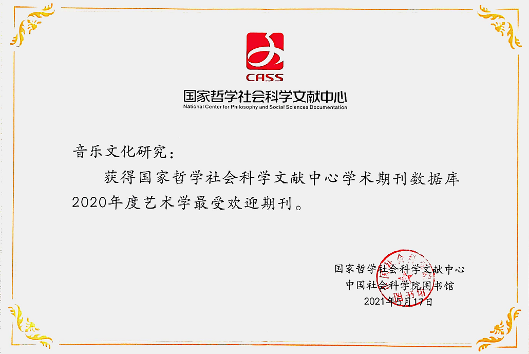 《音乐文化研究》获评2020年度全国艺术学最受关注及最受欢迎期刊