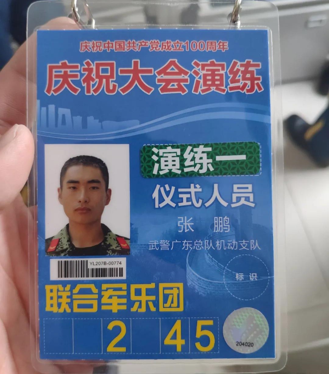 音乐教育学院2017级学生张鹏也参与了本次庆祝大会的演奏。张鹏在大二读完之后选择了参军,入伍后,有音乐特长的他被选入武警广东总队军乐队。3月,经过内部的层层筛选,张鹏在全军录视频考核中成绩优异,被选入第十七次联合军乐团参与庆祝中国共产党成立100周年大会,并圆满完成任务。他说,学校磨炼心智,部队磨练意志。参加此次庆典,令他终身难忘。