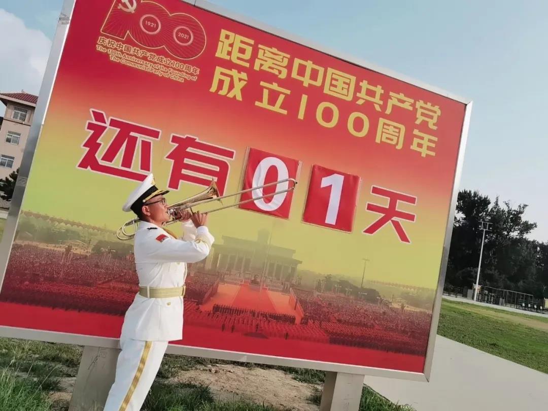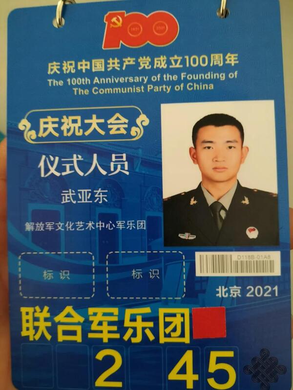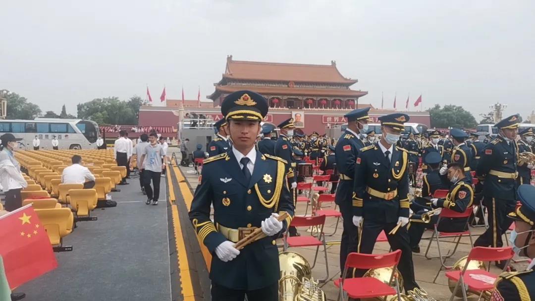 军乐激扬,奏唱百年大党风华正茂。在军乐团的列队方阵中,2020届浙音毕业生、解放军军乐团的武亚东担任长号演奏员并兼为安全管理员。为了圆满完成本次演出任务,他们加班加点刻苦训练,在烈日下一站就是三四个小时,甚至一整天时间,最终实现了“站2小时不倒、坐2小时不动、吹2小时不错”的目标,在天安门广场前奏出“千人合一”的恢宏强音。