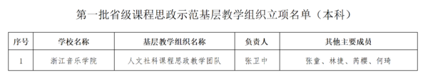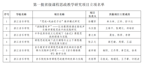 近年来,学院高度重视课程思政建设,出台了《浙江音乐学院课程思政建设实施方案》,按照“价值引领、能力达成、知识传授”的总体要求,以“三全育人、彰显特色、树立典型”为基本思路,深化课程思政教学改革,充分发挥课堂教学主渠道作用,深挖各类专业课程育人功能,全力推进全员全过程全方位育人。学院将以此次获批省级课程思政教学项目为契机,进一步加强课程思政建设理论和实践研究,持续深入构建“三全”育人格局,充分发挥教师队伍“主力军”、课程建设“主阵地”、课堂教学“主渠道”作用,实现课程思政全覆盖,全面提升学院人才培养质量。