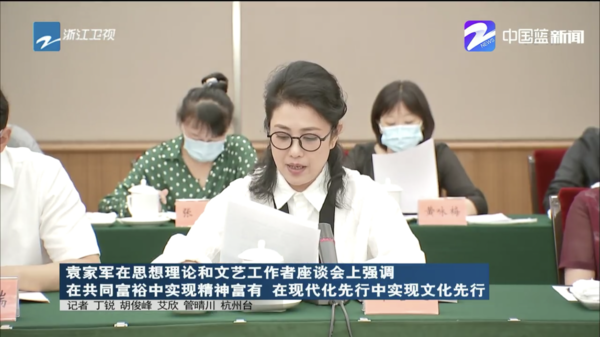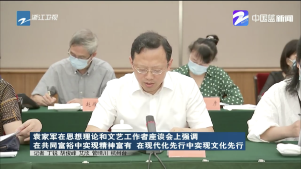 8月25日,省委书记袁家军在杭州专题调研文化工作,并召开思想理论和文艺工作者座谈会。他强调,全省思想理论和文艺工作者要深入学习贯彻习近平总书记关于文化建设的重要论述精神,以高度的文化自信和文化自觉,以战略眼光和全局视野深刻把握打造新时代文化高地的新使命,在共同富裕中实现精神富有,在现代化先行中实现文化先行,让文化成为“重要窗口”中最具魅力、最吸引人、最为靓丽的亮点,努力为高质量发展建设共同富裕示范区塑形铸魂赋能,为建设社会主义文化强国展现浙江作为。