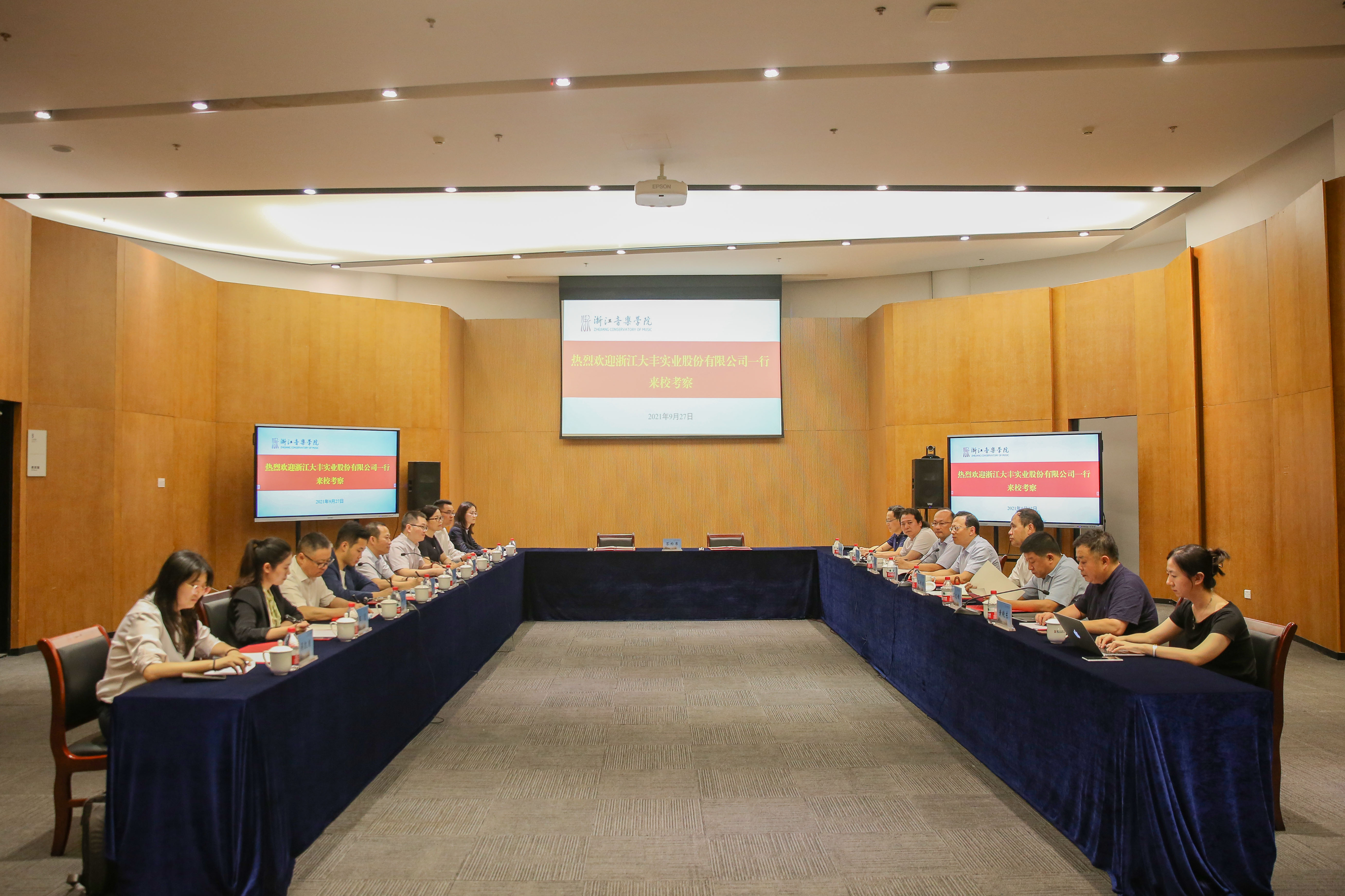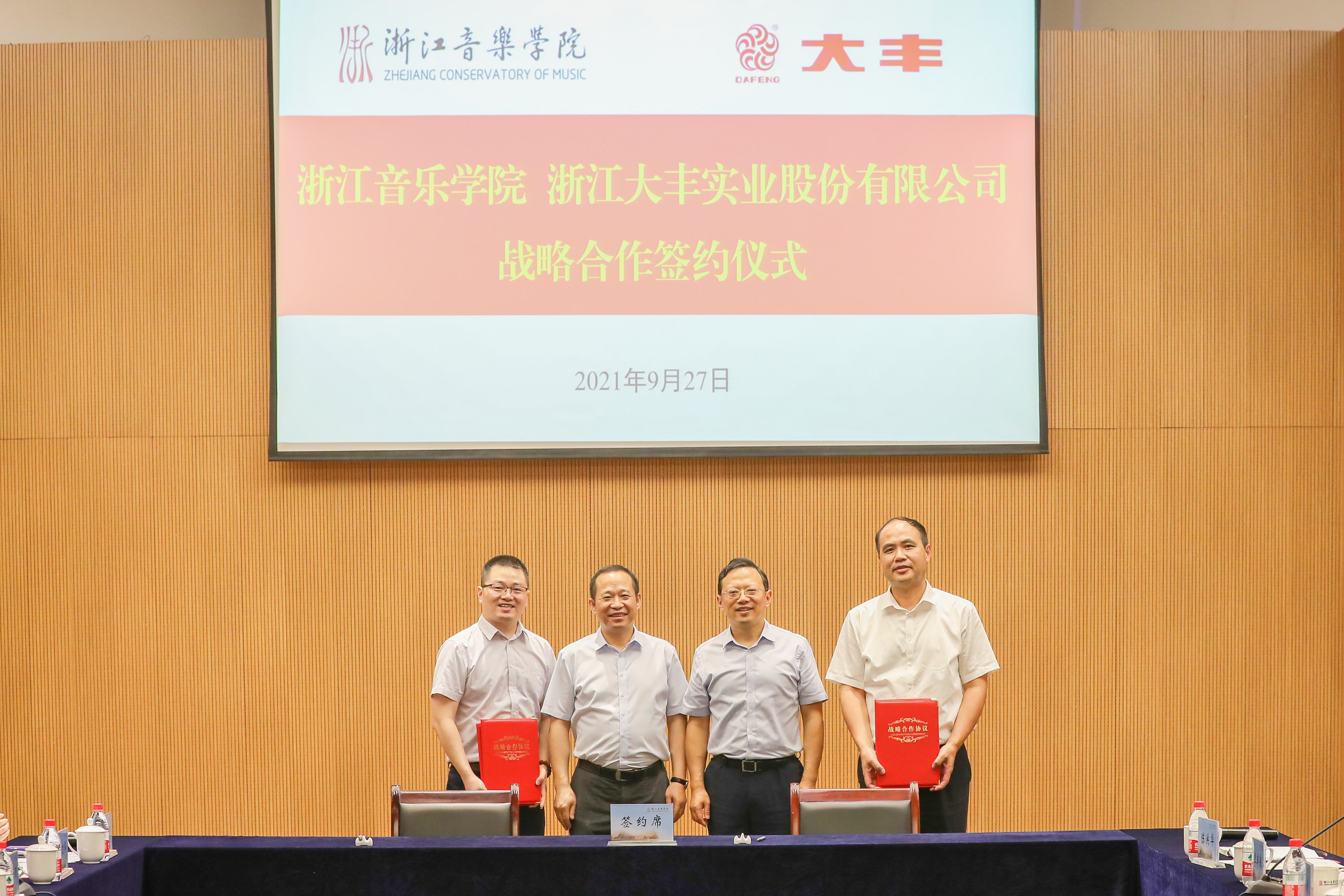 学院党委副书记王均寅与大丰副总经理兼首席战略官金丹共同签署合作协议。大丰一行在王均寅陪同下实地考察了大剧院、音乐厅,观摩了舞蹈教学实践和戏曲教学实践,参观了数字音乐智能处理技术文化和旅游部重点实验室,并欣赏了民族乐队学院声部音乐会。签约仪式后,双方有关部门负责人还围绕合作内容进行座谈。