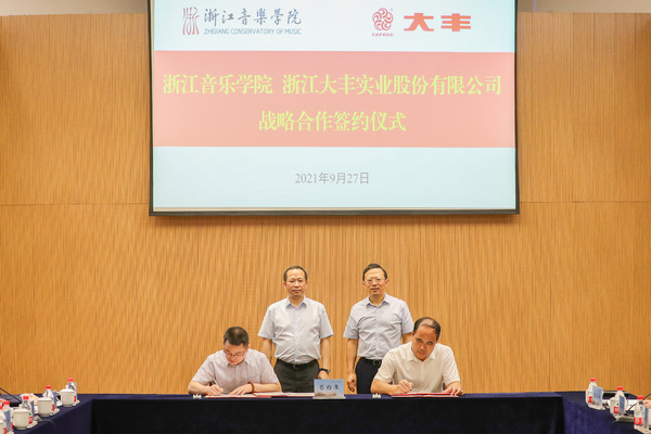 据悉,浙江大丰实业股份有限公司是集文体旅创新科技和文体旅赋能服务于一体的整体解决方案提供商、行业龙头企业。公司设有文化产业、体育产业、文化传媒、数艺科技、文旅融合、轨交设备六大业务板块,参与承建了全国75%以上的中高端文化场馆,为央视春晚、奥运会、世界杯、建党百年等顶级赛事和大型活动提供核心产品与服务。与大丰开展战略合作,是学院助力高水平一流音乐学院建设,积极构建以市场为导向、以人才培养为根本、产学研深度融合的人才培养体系的重要举措。接下来,双方将在探索合作办学,共筑学术高地;创作精品剧目,培育艺术生态;孵化品牌节会,提升行业和社会引领;深化数字赋能,服务数字化改革等方面,开展深度合作,共同为文化强国和省域高质量文化发展提供理论、技术、人才及产业支撑。