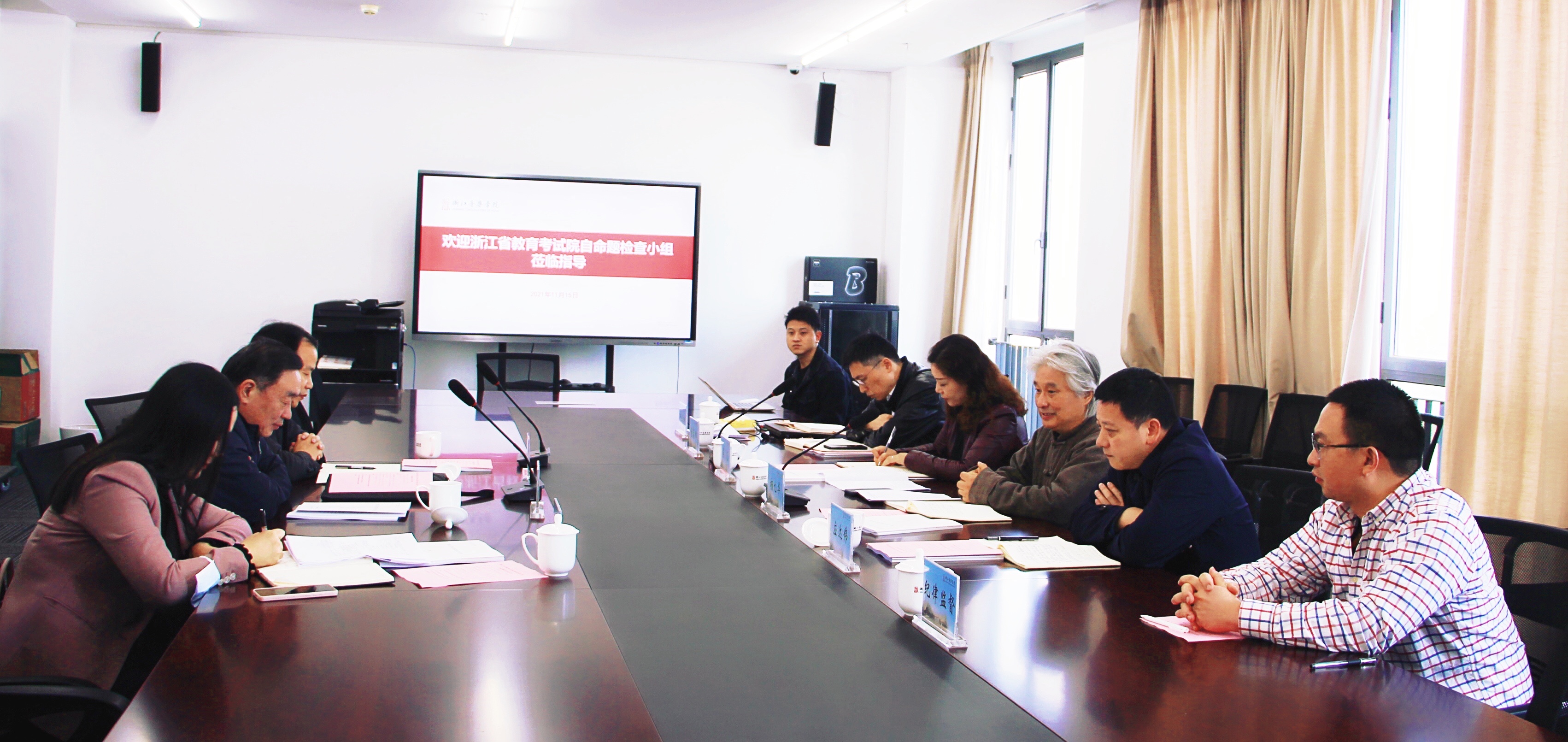 11月15日上午,省教育考试院副院长、党委委员冯成火一行三人来校开展2022年硕士研究生招生考试自命题工作检查。学院党委书记胡建新、院长王瑞分别会见了检查组一行,副院长杨九华,党委委员、纪委书记应达伟以及研究生处有关工作人员参加相关检查活动。