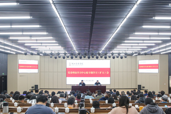 12月22日下午,学院党委理论学习中心组专题学习(扩大)会在图书馆B002报告厅召开。会议邀请浙江工商大学党委书记、浙江省法学会副会长陈柳裕教授作题为《学习宣传贯彻习近平法治思想 坚定不移走中国特色社会主义法治道路》的报告。学院党政班子成员胡建新、贾秀英、王均寅、杨九华、张伟波、汪洋、奚丽萍、李俊出席会议。会议由学院党委书记胡建新主持。