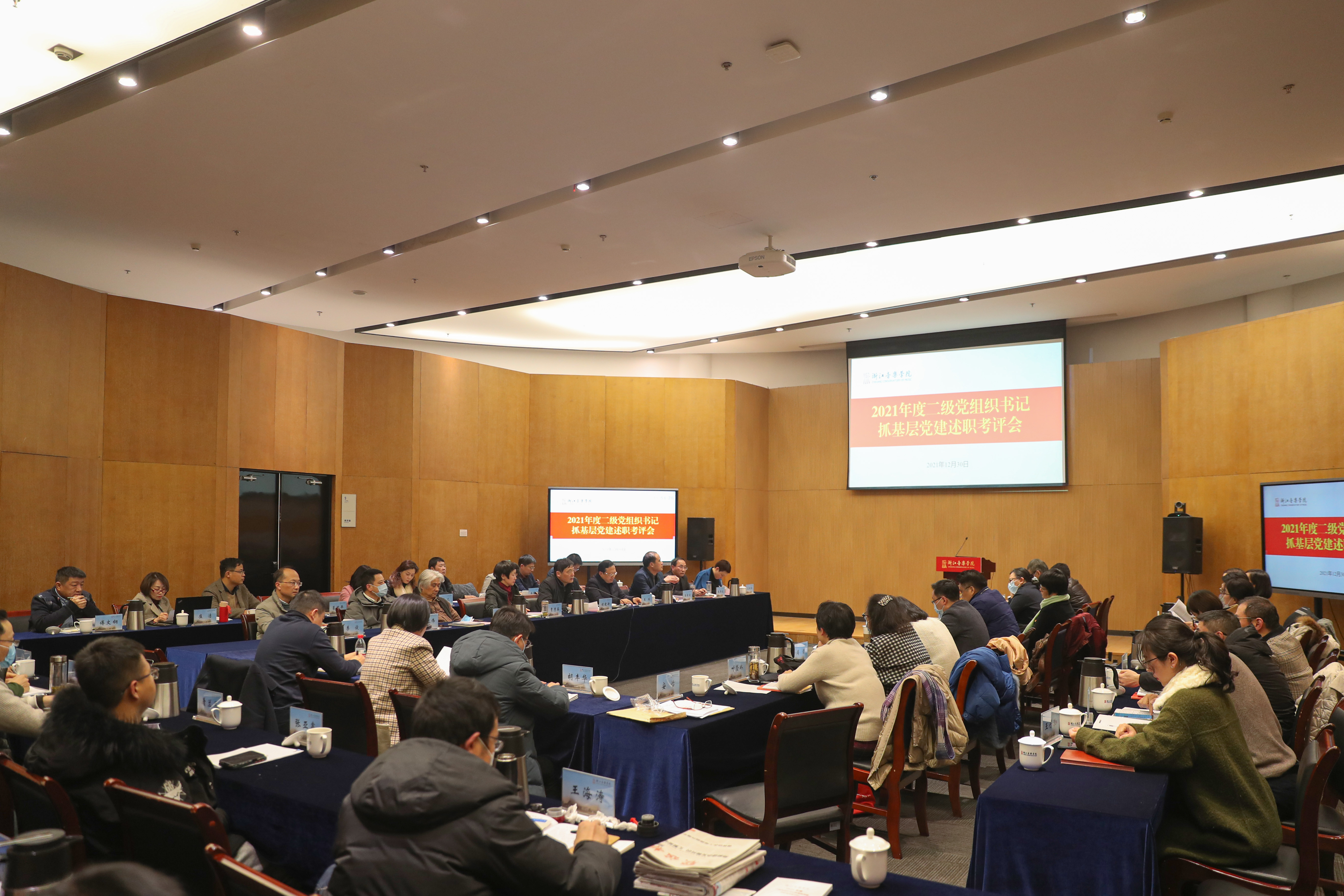 12月30日下午,学院召开二级党组织书记抓基层党建述职考评会。学院党政班子成员,各二级党组织书记、副书记、组织员,全体基层党支部书记,机关党群部门负责人共80余人参加。会议由党委书记胡建新主持。