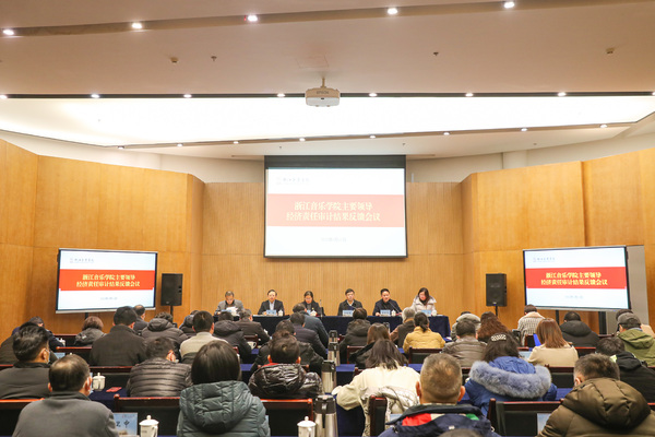1月11日下午,浙江音乐学院主要领导任期经济责任审计结果反馈会在行政楼103会议室召开。省审计厅党组成员、省经济责任审计工作联席会议办公室主任张红英,审计组成员出席会议,会议由省审计厅经济责任审计二处处长陈建斌主持。学院党政领导班子全体成员,各系院(部)、部门主要负责人,计划财务处主管人员、审计处全体人员等参加会议。