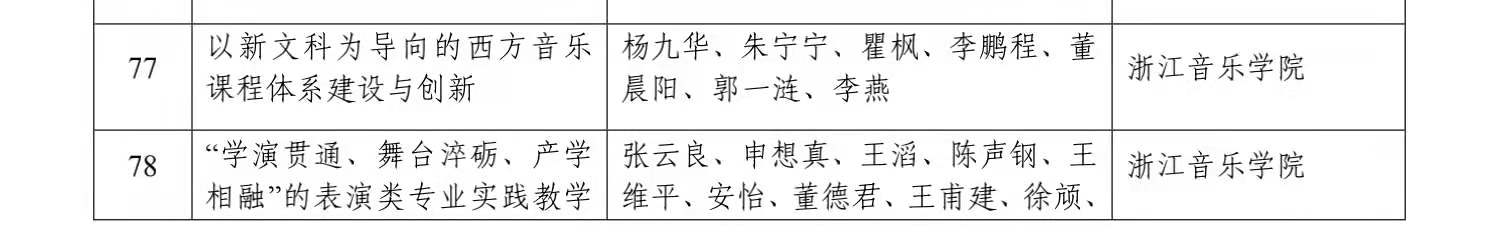 据悉,浙江省教学成果奖每四年评选一次,代表了当前我省教育教学工作的最高水平,是彰显人才培养工作水平和教育教学改革成果的重要指标。下一步,学院将充分发挥优秀成果的示范带动作用,围绕立德树人根本任务,聚焦内涵发展,不断优化“校—省—国家”教学成果培育体系,力争在教学改革、研究和实践中再创佳绩,助力学院高水平一流音乐学院建设,为浙江省建设高等教育强省贡献力量。