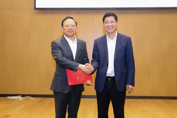聘任仪式上,干武东为新一届校学术委员会主任委员王瑞、副主任委员汪洋颁发聘书;王瑞为校学术委员会委员发放聘书。