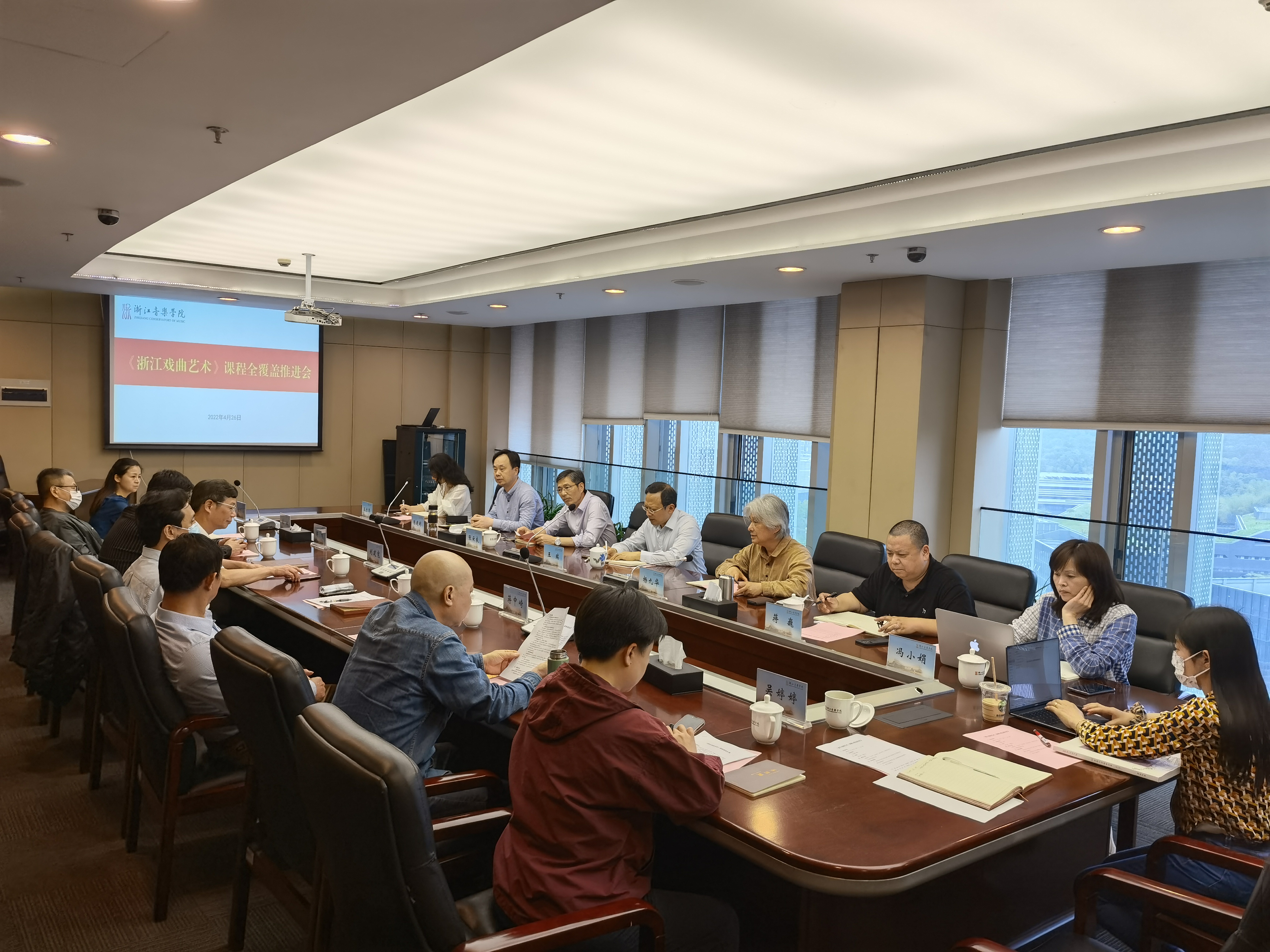 为进一步推进《浙江戏曲艺术》课程全覆盖、及时总结课程实施的前期经验,4月26日下午,学院在行政楼1003会议室召开《浙江戏曲艺术》课程全覆盖推进会。院长王瑞、副院长杨九华出席,教务处、艺术处及相关教学单位负责人和教师代表参加了本次会议。会议由杨九华主持。