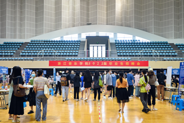 随后,由学院、浙江省文化产业促进会、杭州市人才管理服务中心、杭州市就业管理服务中心联合举办的2022届毕业生招聘会启动。招聘会以富有音乐特色的主题表演拉开序幕后,企业代表宣讲岗位需求,并与学生一对一开展沟通交流。
