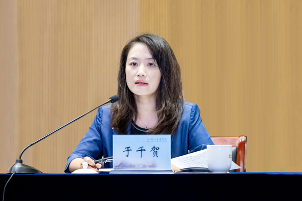 于千贺充分肯定了学院在科研创新方面所取得的显著成绩。她指出,重大项目要以习近平新时代中国特色社会主义思想为指导,确保研究成果符合党的路线方针政策;学院和课题组要深入学习贯彻习近平总书记系列重要讲话精神和即将召开的党的二十大的新精神,牢牢把握构建中国特色哲学社会科学的战略任务,推动创新创造,在新的征途上谱写哲学社会科学事业发展的新篇章。她要求课题组在研究过程中提高政治站位、保证研究质量、恪守学术诚信,按期报送工作简报和成果要报,争取以优异的研究成果圆满结题。