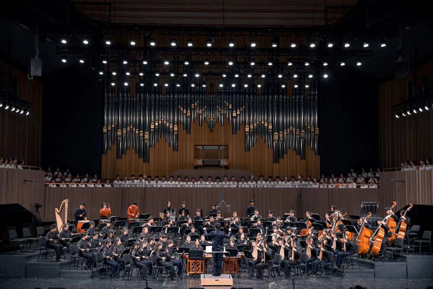 气势恢弘的民族管弦乐、余音绕梁的古筝协奏、宏大磅礴的交响乐、行云流水的钢琴协奏、牵动人心的大合唱……10月10日晚,附属音乐学校教学汇报演出在音乐厅举行,为现场观众带来了一场精彩绝伦的视听盛宴,献礼党的二十大。