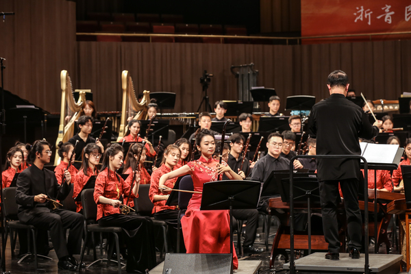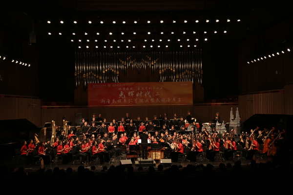 9月30日晚,光辉时代Ⅱ——浙音民族乐队学院大型民族音乐会在学院音乐厅精彩上演。本场音乐会由国乐系系主任、民族乐队学院艺术总监王甫建执棒,携手国乐系优秀学生,用恢宏澎湃的乐音共贺国庆、喜迎二十大。
