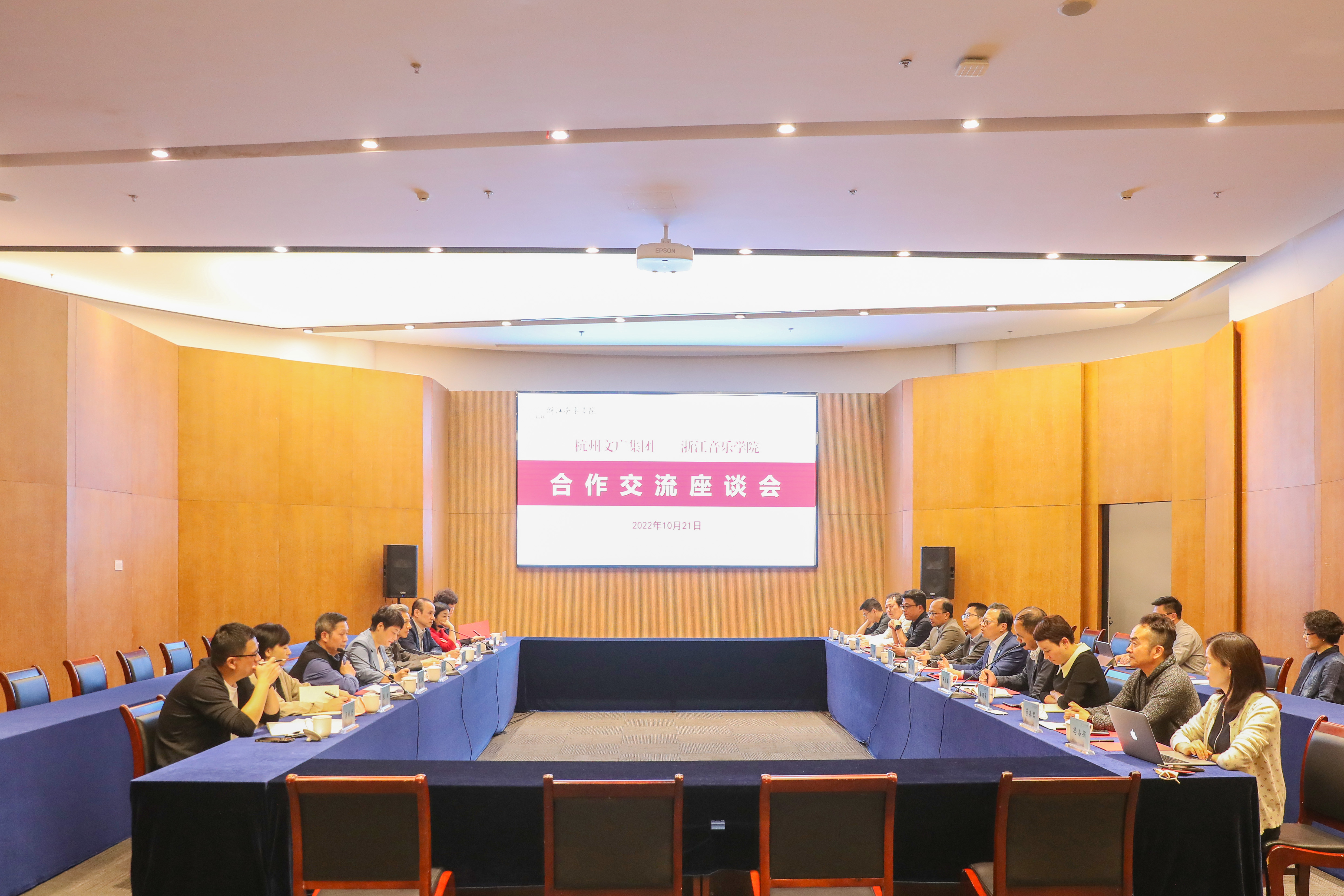 座谈会上,双方分别介绍了近年来各自的发展情况,并就校企发展战略、文化资源、艺术品牌和人才资源等进行了广泛而深入的交流。双方一致认为,浙江音乐学院与杭州文广集团作为浙江省和杭州市最具代表性的文化艺术单位,应积极主动承担起引领城市文化发展、助力精神文化共富、服务国家文化战略的重任,在艺术实践、人才培养、文化惠民、文化产业等方面加强交流合作,积极推进艺术实践基地共建、高端文化品牌共创、精品剧目共研、演艺产业项目共孵、艺术培训市场共育等领域交流与合作,并希望通过加强校企间的全面战略合作,实现资源共享、优势互补、合作共赢,推动双方深入且可持续的高质量发展。双方还就乐团合作、媒体宣传、场馆租赁、票务合作等内容进行了深入交流。