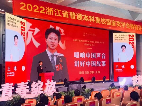 10月23日下午,由浙江省教育厅、浙江省财政厅主办,浙江教育发展中心、中国美术学院承办的2022年浙江省普通本科高校国家奖学金特别评选大会在中国美术学院南山校区举行。学院声乐歌剧系王博同学获国家奖学金省级特别推荐资格(全省共10名),这也是我校学子连续两年获评该项特别推荐资格。