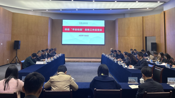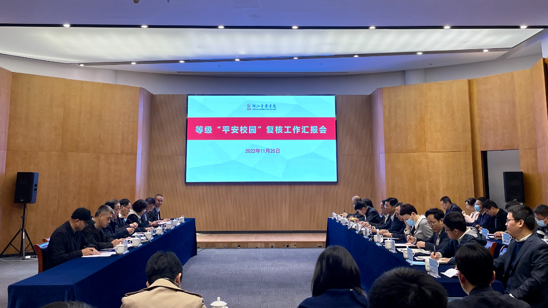 11月25日,浙江省2022年等级平安校园考评专家组一行7人来校进行等级平安校园复核考评工作。专家组组长、浙江工商大学副校长方向明主持等级平安校园建设考评汇报会和反馈会,学院党委书记干武东,院长王瑞,副院长、党委委员张伟波,党委委员、组织部部长、统战部部长、人才办主任奚丽萍出席会议,各相关职能部门、各院系党组织负责人参加会议。