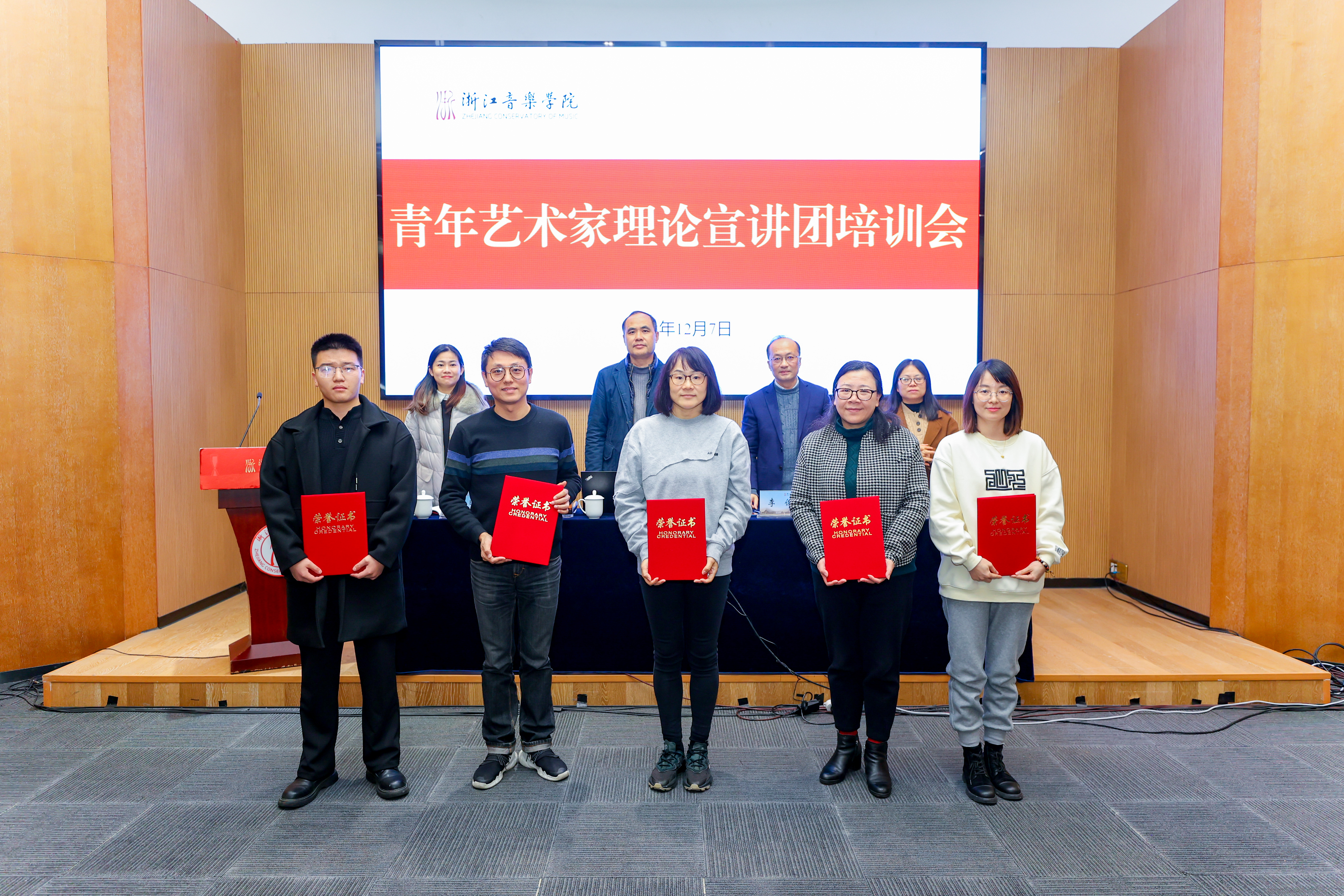 为更好打造一支高水平、有特色的宣讲队伍,进一步把党的二十大精神和习近平新时代中国特色社会主义思想讲清、讲实、讲活,12月7日下午,学院举办青年艺术家理论宣讲团成立仪式及培训会。学院党委副书记王均寅,党委委员、宣传部部长、教师工作部部长李俊出席,学生工作部、团委,各二级党组织分管学生工作负责人,宣讲团成员和获奖代表参加成立仪式。