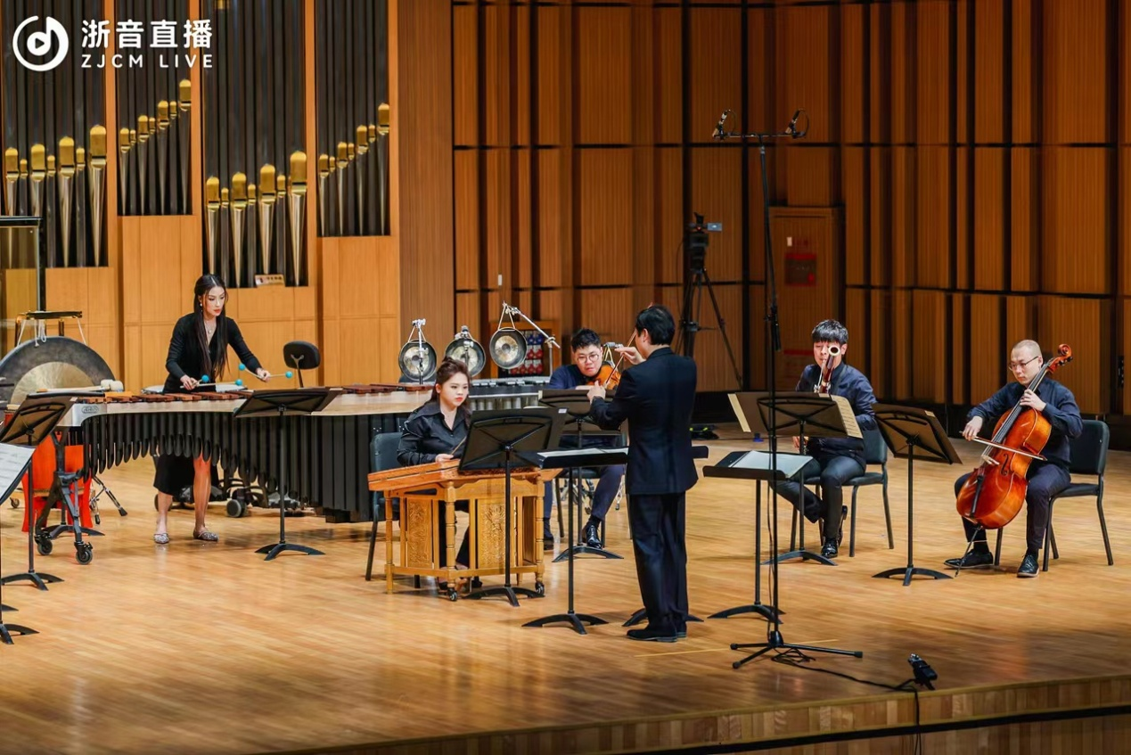 第一首作品是就读于匈牙利李斯特音乐学院的博通·巴托克斯所创作的西方管弦乐器和中国民族乐器结合的乐曲《诱惑》。作品在简单音乐理念中创造出复杂的结构纹理,中西方乐器交相呼应,像一场中西文化的交融与对话。乐曲《雁北归》出自浙江音乐学院作曲与指挥系2020级本科生姚澜。该乐曲为二胡、古筝与钢琴而作,借用民歌《嘎达梅林》的主题动机,营造出雁群掠过天际时淡然悠远的画面。四川音乐学院首届拔尖人才胡文杰创作了《经纬对称》,以跨学科方式来进行音乐的构建,在音乐创作中引入“经纬对称”的地理概念,特别是中国乐器笙和筝与小提琴、大提琴和贝斯对话,非常具有实验性和探索感。李斯特音乐学院硕士研究生、出生于墨西哥的作曲家奥里斯·穆松的作品《不确定的泰山之旅》,展现了中国竹笛与西洋长笛的对话,旋律大气,技法高超、富有想象力。作品《八音迭奏》出自上海音乐学院2020级作曲博士研究生杨晓蕾。作品表达了对家乡台湾的深切思念,通过选取汉族传统音乐“客家八音”与原住民传统音乐布依族“八部合音”元素,将岛屿的“二元”对话绘声绘色地描摹下来。