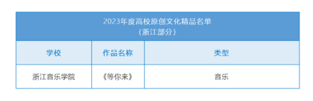 近日,教育部公布2023年度高校思想政治工作质量提升综合改革与精品建设项目入选名单,学院音乐作品《等你来》入选高校原创文化精品项目名单,实现了新的重大突破。