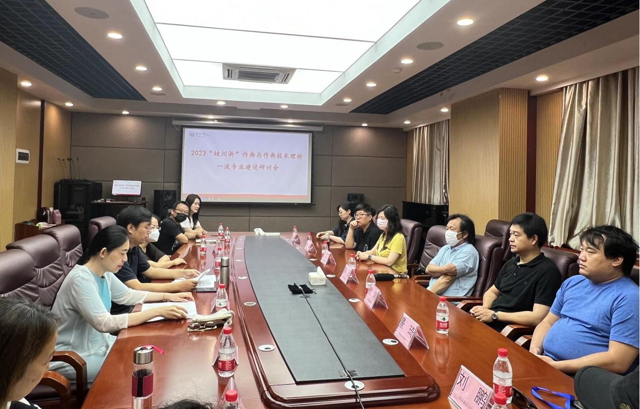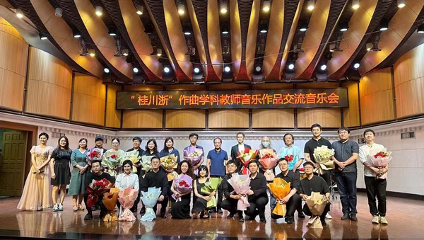 期间,“桂川浙”作曲学科教师音乐作品交流音乐会上演了广西艺术学院、四川音乐学院以及我校共12位教师的作品,包括郭鸣教授的《独白》、张泽艺副教授的《春醒》、朱慧副教授的《淋风夜雨荷上行》以及张昕副教授的《土土虫》。同时,“桂川浙”作曲与作曲技术理论一流专业建设研讨会顺利召开,3所院校教师就作曲课程设置、学科建设、学术研究、人才培养等方面进行了深入的交流与探讨。