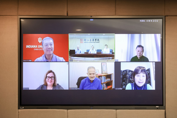 学院与印第安纳大学雅各布音乐学院举行线上合作洽谈会议