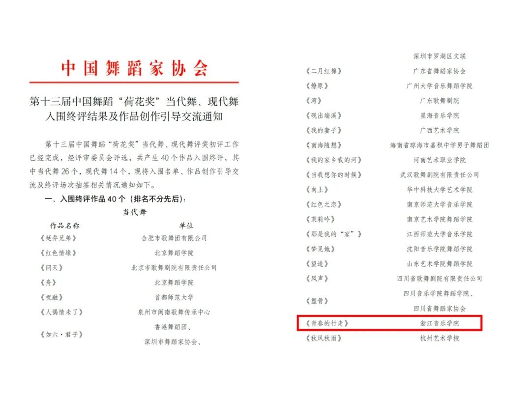 此次共有26部当代舞作品之中入围终评。这是学院继《上岸》《呐喊》《阶梯爱情》后,第4个入围中国舞蹈“荷花奖”当代舞、现代舞终评的作品。