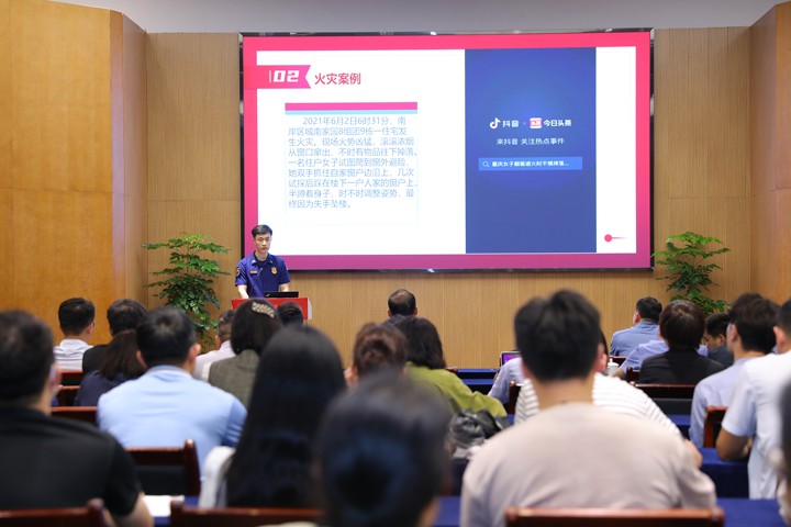 培训会上,转塘消防救援站副站长张修瑞结合火灾视频、典型火灾案例,为师生深入浅出地介绍了火灾带来的严重危害,并向大家详细讲解了常见火灾起因、火灾预防措施、灭火器使用、火灾自救方法等,让大家深刻感受到火灾的无情及掌握消防安全知识的重要性。
