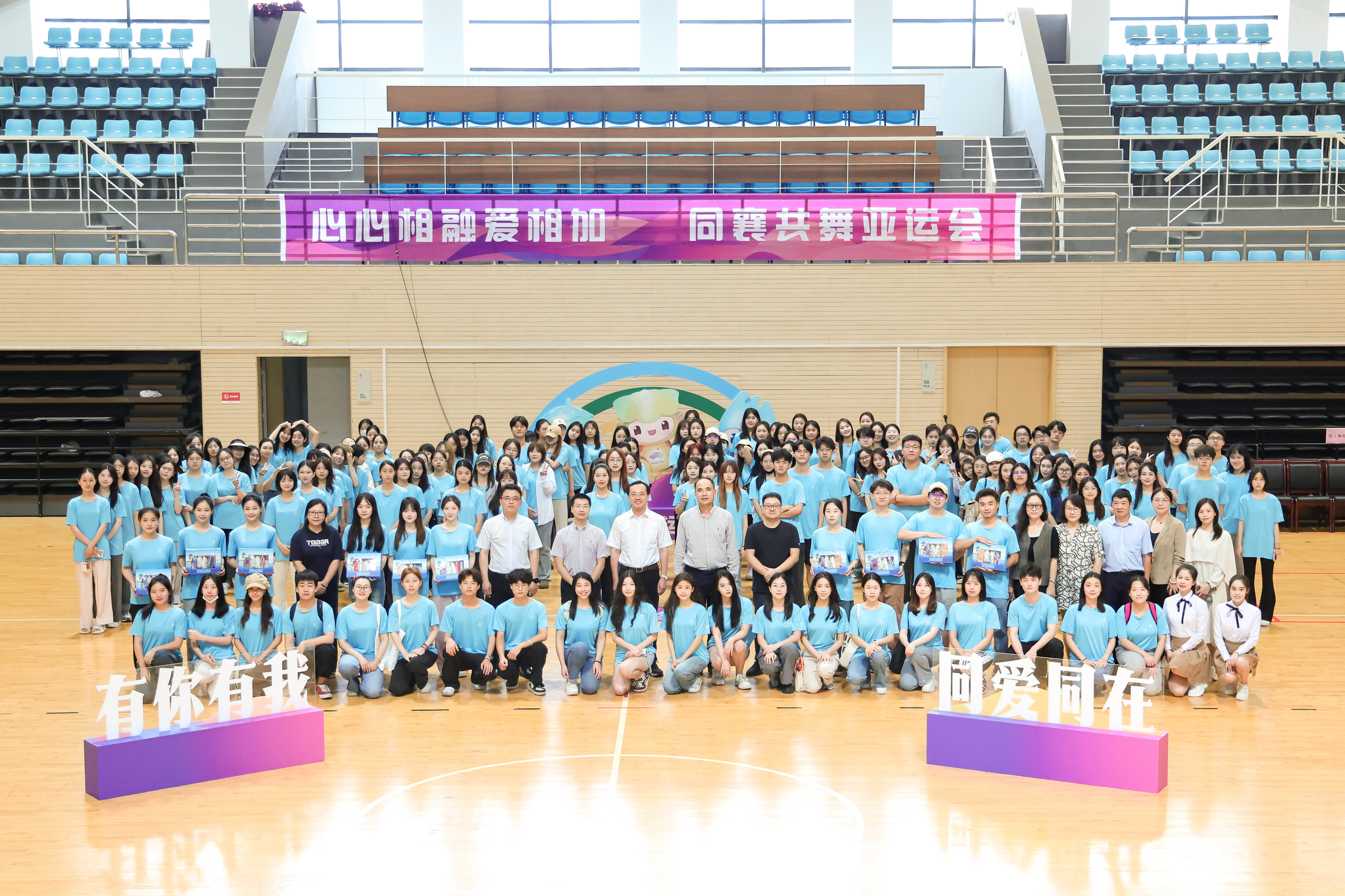 与会领导向群演师生代表分发慰问品,并为其后续排练演出加油打气。群演师生们也纷纷表示,要拿出百分百的干劲,秉持为国争光的使命感、青春无悔的拼搏劲、勠力同心的精气神,打起十二分精神,努力呈现最好的结果,为浙音争光、为杭州争光、为浙江文旅人争光、为浙江争光、为中国争光。