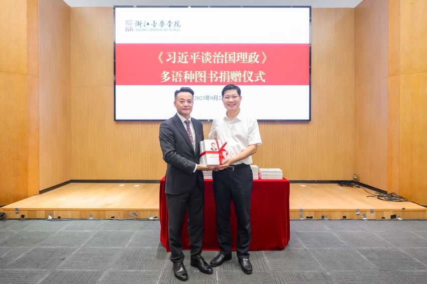 余富文表示,《习近平谈治国理政》一书是国际社会了解当代中国的重要窗口,也是寻找中国问题答案的一把钥匙。此次为浙音捐赠《习近平谈治国理政》多语种书籍,主要用于学院增强思政工作、学习“新理念、新思想、新战略”,同时在智库建设、人才培养和对外交流项目中,发挥校企合作的优势,用音乐艺术向世界传递中国和合之声,为实现中华民族伟大复兴中国梦作出应有的贡献。