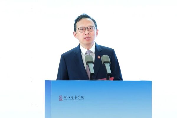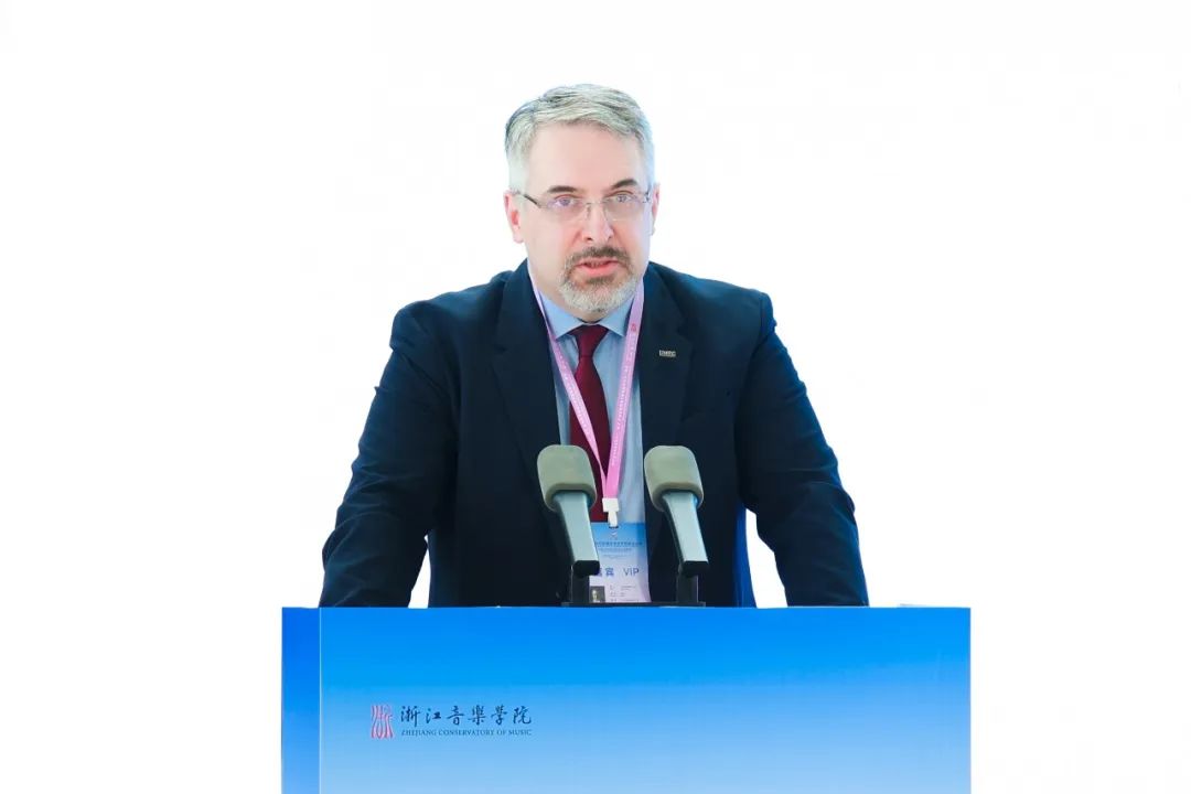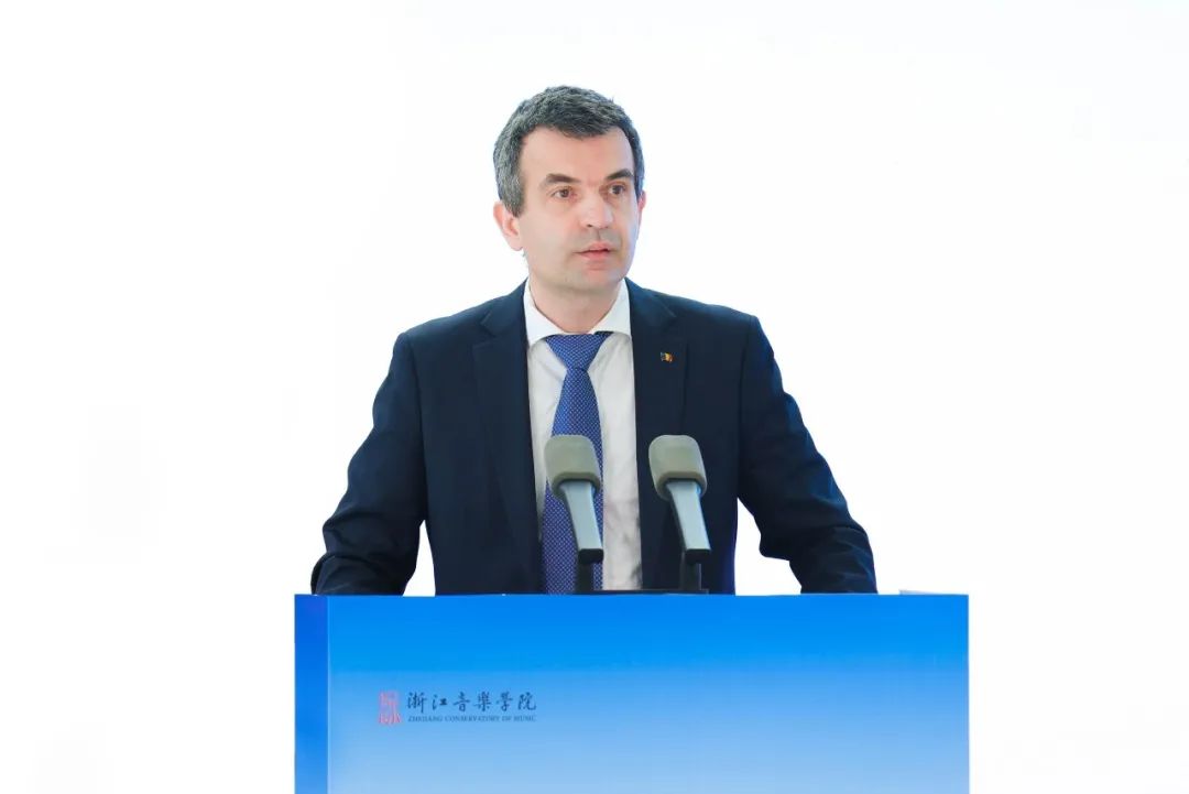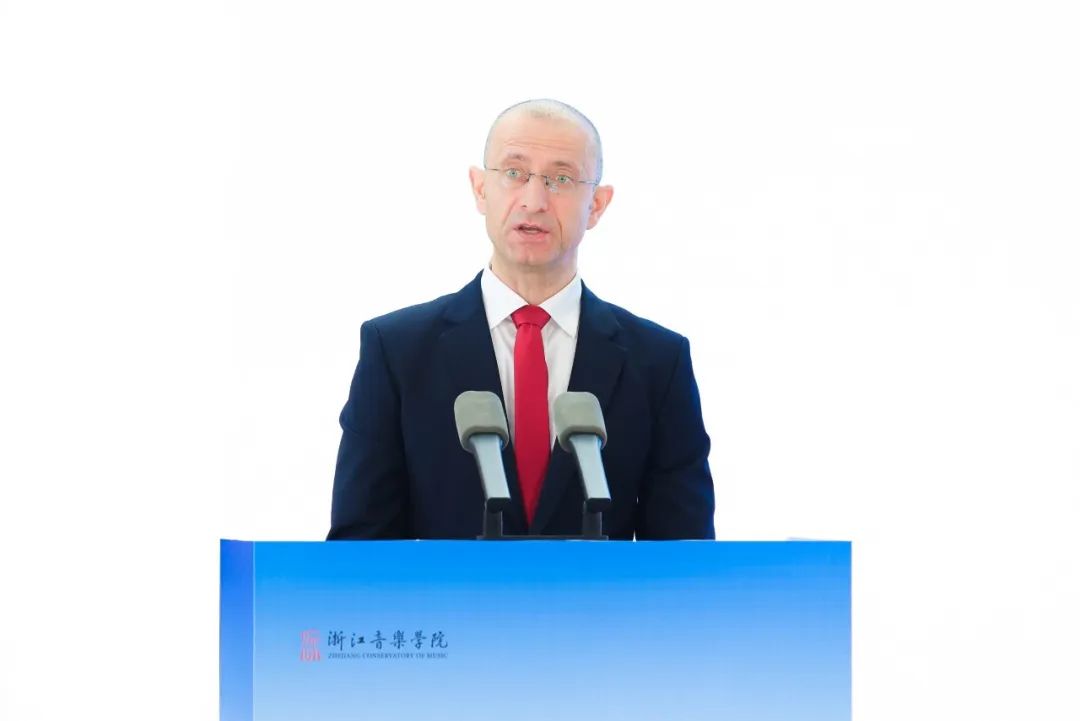 省文化和旅游厅一级巡视员许澎致辞。他指出,“文明因交流而多彩,文明因互鉴而丰富”。 今年是“一带一路”倡议提出十周年,站在新的历史起点上,希望浙江音乐学院以及各联盟院校能够总结过去六年的合作经验,持续完善交流机制,创新合作方式,着力将院长论坛和音乐舞蹈季打造成为有国际影响力的音乐艺术品牌,在文化领域为中国与中东欧国家合作发展注入新的活力。