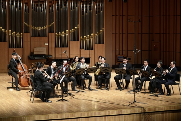 当晚,第二届国际管乐艺术周开幕音乐会在标准音乐厅拉开帷幕。美国著名单簧管演奏家李可思、波兰著名长笛演奏家伊丽莎白·沃伦因斯卡和学院管弦系教师、捷克著名长笛演奏家克拉拉·诺瓦克瓦及李艺花、仇潇潇、李佳胤、翟星星、杨光、吉祥、马柳杨、李锐等共同带来《第二奏鸣曲》《大二重协奏曲》《愿和平在你身上—致敬费德曼》《大组曲》《火车竞速》《黄金的惊喜》等管乐经典作品。此次音乐会涵盖古典、浪漫及现代、当代等不同风格体裁的作品。演出现场,木管空灵悠扬、铜管醇美浑厚、管风琴宏大饱满……演奏家们配合默契,旋律时而优美舒缓,时而欢快跳跃,时而大气磅礴,将一个个美妙的音符幻化成动人的音乐画面。观众们精心聆听,细细品味着管乐艺术带来的无穷魅力。