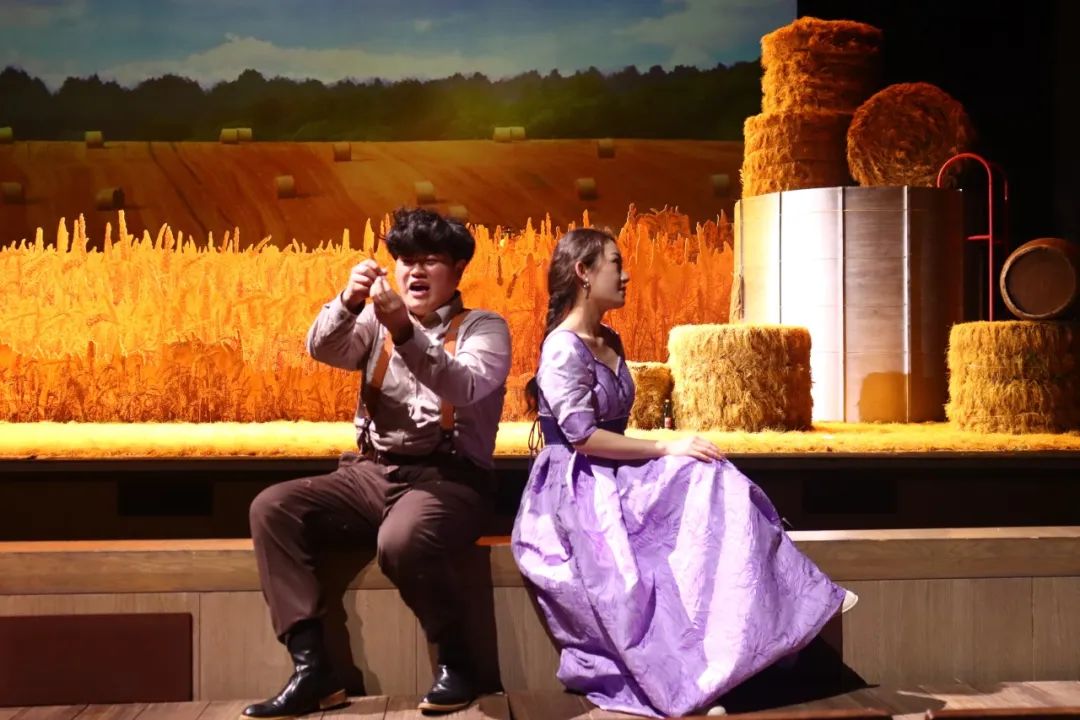 极富浪漫情怀的舞美设计也是这部剧引人入胜之处。此次特邀国家大剧院舞美设计师刘崭担任舞台设计。曾在意大利深造四年的她,以其独到的艺术审美设计了故事场景。舞台之上的托斯卡纳田园堆放着高高的麦秸垛,村外环绕着金色的麦田,将观众带入19世纪意大利乡村的恬静一隅。