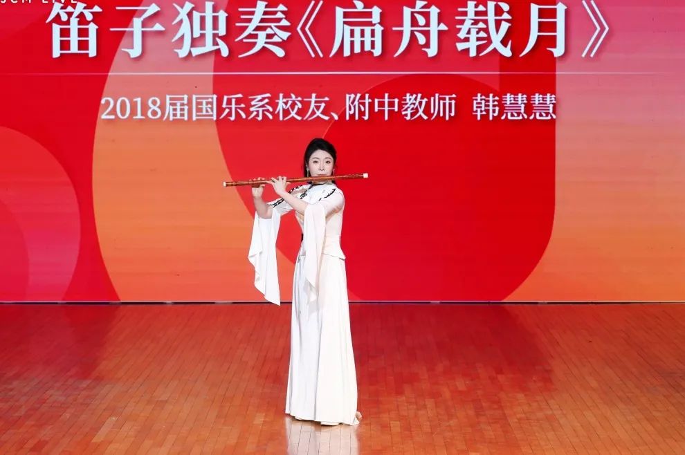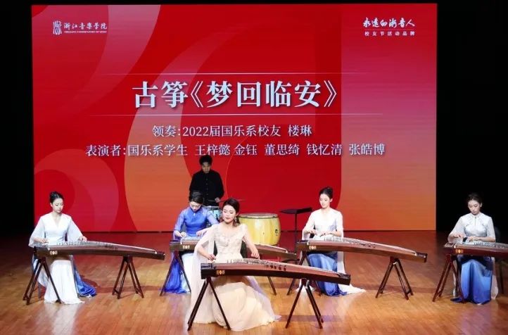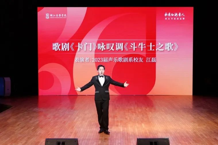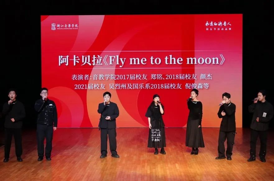 现场,由20余位毕业校友与各院系在校生联袂带来精彩的文艺演出:歌剧咏叹调《斗牛士之歌》、舞蹈《寒依疏影》、笛曲《扁舟载月》、钢琴曲《斯拉夫舞曲Op.72 No.2》、歌曲《爱》、越剧《十八相送》、古筝《梦回临安》、阿卡贝拉《Fly me to the moon》......一出出精彩的节目承载着一段段美好的青春回忆,表达了校友们浓浓的爱校深情。