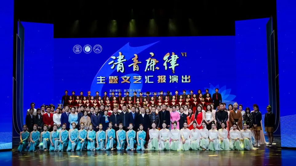 为深入学习贯彻习近平总书记在浙江考察时的重要讲话精神和浙江省委部署要求,持续推动“八八战略”走深走实,坚定不移全面从严治党,纵深推进清廉浙江建设,按照建设“清廉浙江”“清廉教育”的总体要求,12月27日,浙江音乐学院、浙江艺术职业学院、浙江旅游职业学院三所高校联动开展的第六届“清音廉律”主题汇报演出在学院大剧院上演。