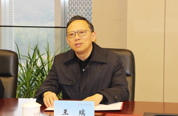 王瑞对裘建勇一行表示热烈欢迎,并介绍了学院近年来的发展建设情况。他指出,嵊州是闻名中外的“越剧之乡”,历史文化绵长,底蕴深厚,特色鲜明,经济综合实力强劲,此次来访深化校地合作,彰显嵊州市委市政府对文化和教育事业的高度重视,双方应积极贯彻省委省政府有关指示精神,开放合作、共同发展,探索和推动校地全面战略合作。