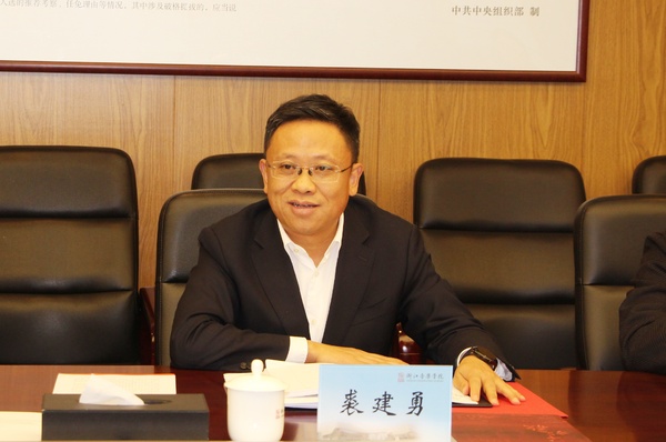 裘建勇对学院领导的热情接见表示感谢,对学校发展取得的成绩表示赞赏。他就嵊州市文化、产业、城市建设与越剧文化发展等情况进行了介绍,并对校地合作提出了意见。