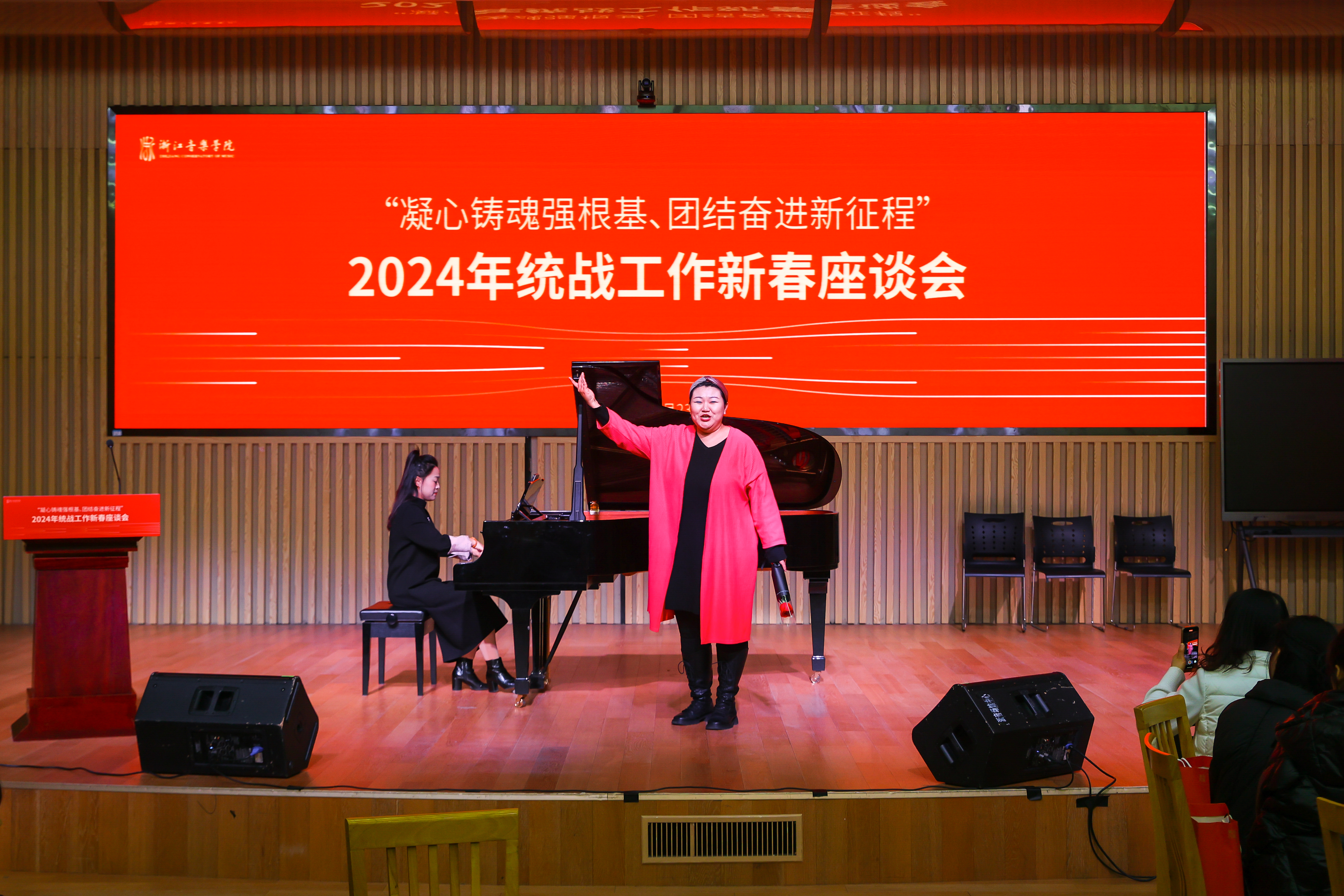 会上,他指出,2024年是全面贯彻党的二十大精神的深化之年,是新中国成立75周年,学校党委将继续团结带领大家凝心聚力谋发展、奋发有为开新局。他勉励大家:一是持续推进政治引领。要深入学习贯彻习近平新时代中国特色社会主义思想,持续开展党的二十大、省第十五次党代会和历次全会精神的学习宣传贯彻,进一步筑牢同党组织亲密合作的思想基础,努力把智慧和力量凝聚到贯彻学校党委工作部署上来,不断提升理论修养、政策水平和专业能力。二是发挥好智力优势。要借助自身优势和各类统战工作载体,着重围绕国家重大战略和浙江经济社会发展需要,以平台建设为支撑,以重大理论创新为重点,努力创作出受大众欢迎的文艺精品力作,继续助力学校高水平办好各类音乐艺术品牌活动。三是提高参政议政水平。要结合自己的研究方向、工作领域,围绕学校中心工作开展深入调研,不断提升统战理论研究能力,为学校党政工作积极建言献策,为文化强省建设提出高质量的议案、提案和建议。四是利用好统战平台。要发挥好各类统战人才平台作用,在“引育用留”四个环节中发挥重要力量,积极参与两大矩阵建设,共同助力打造“同心归音”统战品牌,努力在深化国际交流与合作中找到统战工作着力点和突破点。