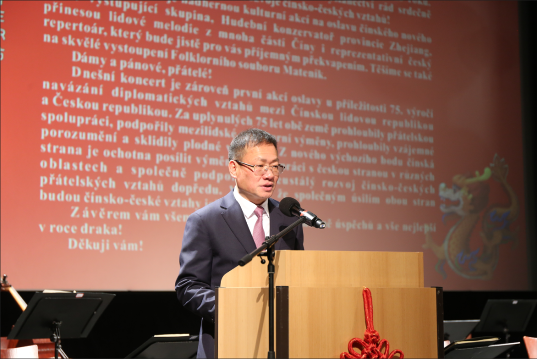 2月3日晚,中国驻捷克大使馆在具有百年历史的中信欧洲控股总部大楼宴会厅举办2024年春节招待会,浙音民族室内乐团为现场的旅捷华人华侨、中资企业人员、孔子学院教师、留捷学者和学生代表等近400人表演了古筝独奏《渔舟唱晚》、二胡曲《赛马》、琵琶独奏《十面埋伏》等中国经典民乐。